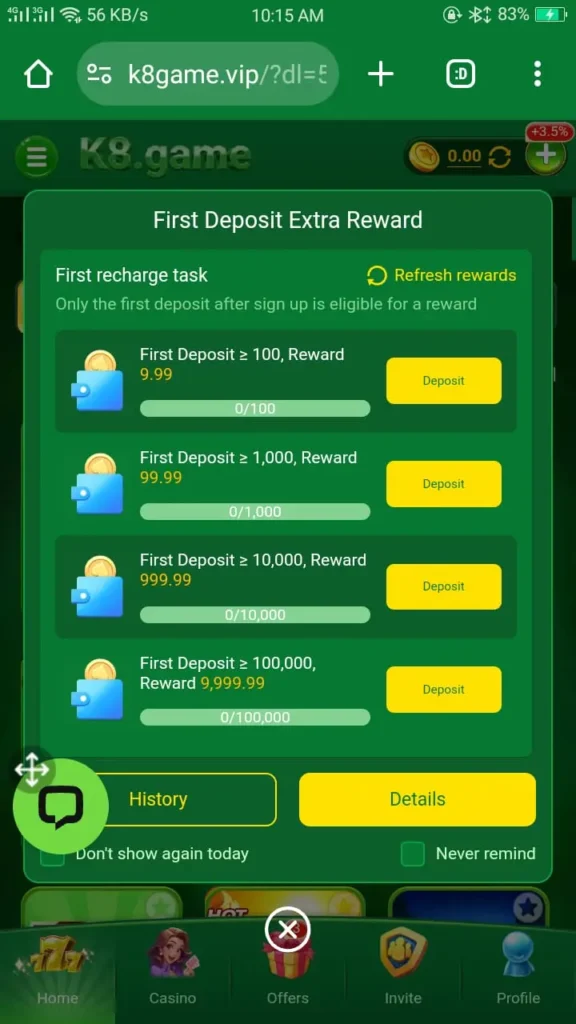 Always read bonus rules carefully after installing K8 Game Download Apk.